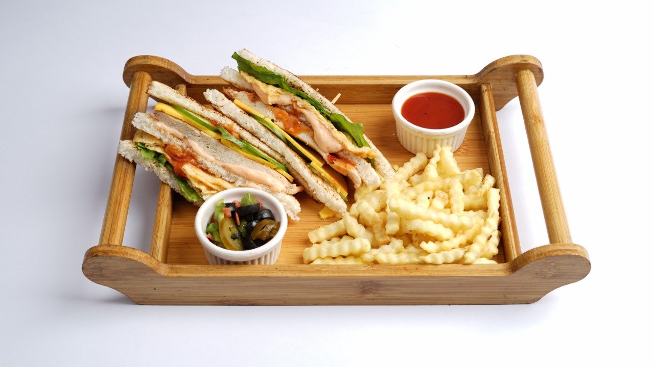 The classic club combo of chicken & egg. Calories: 813 Cal