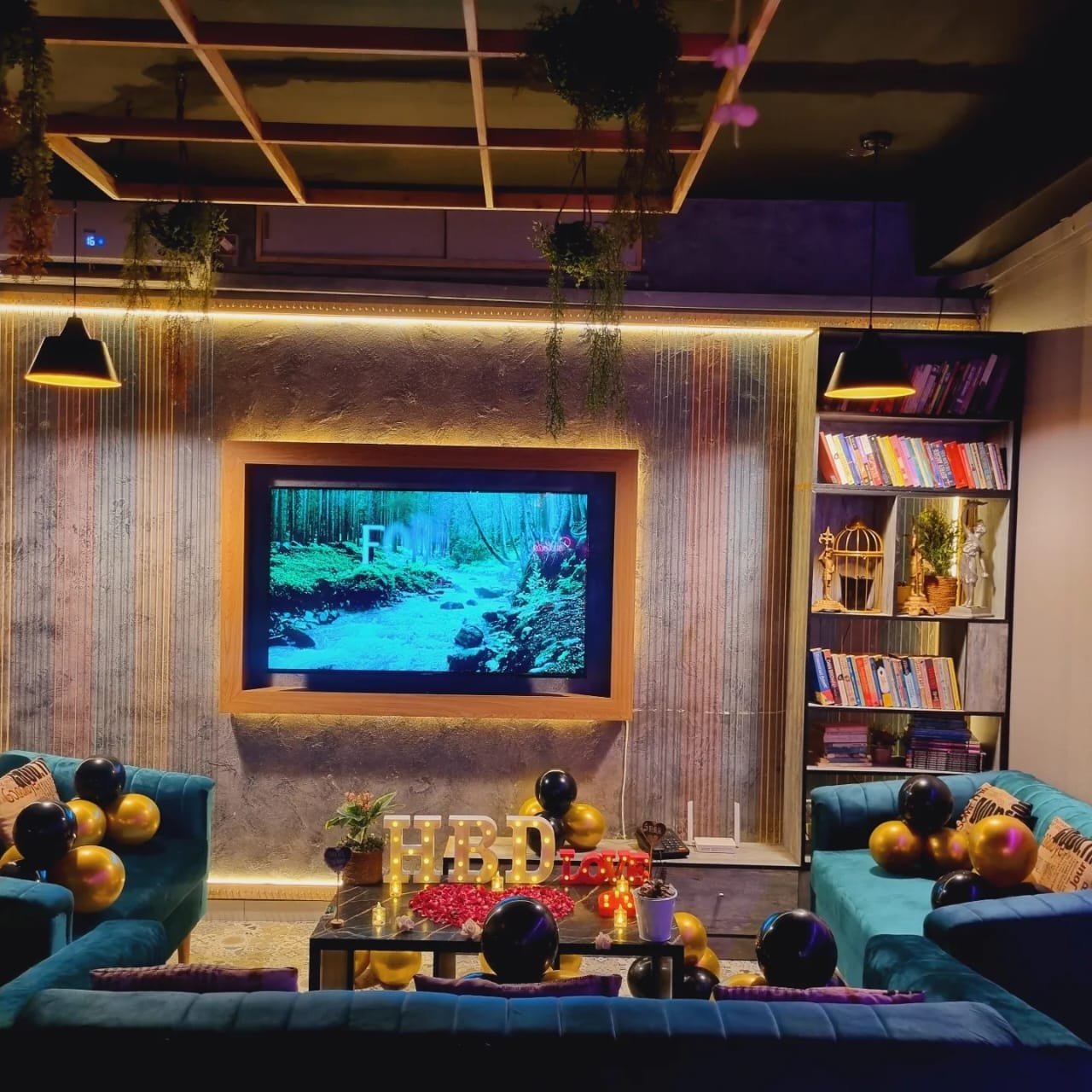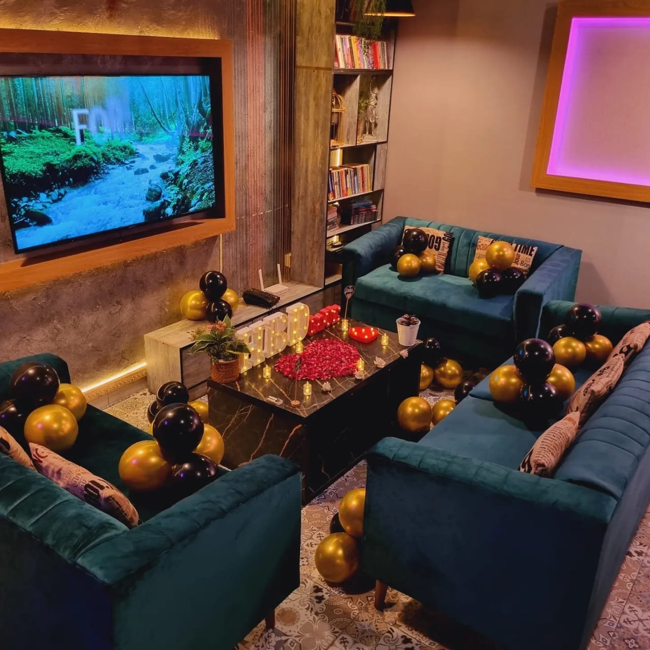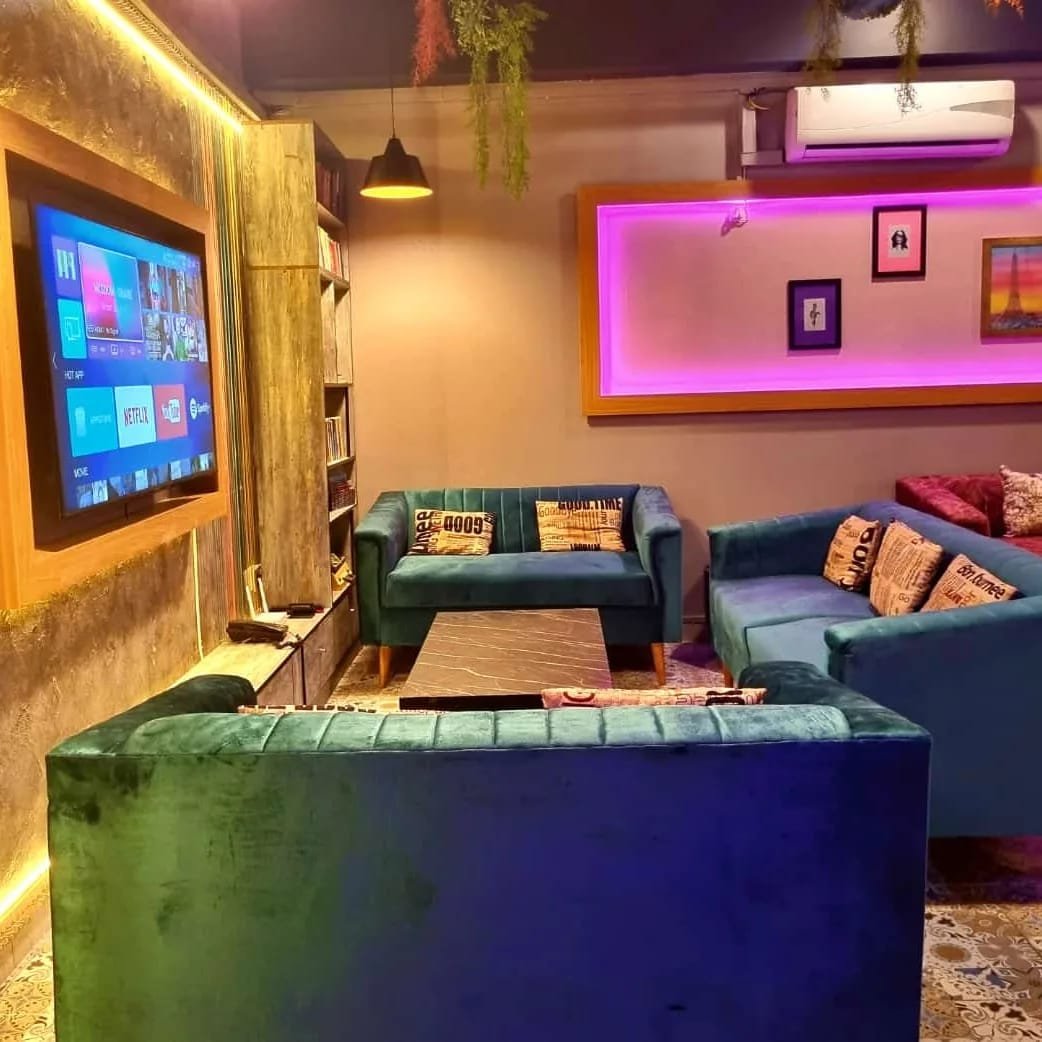 Escape to our luxurious TV Lounge, decorated in the basement with creative interiors that evoke the warmth and comfort of your own home.
